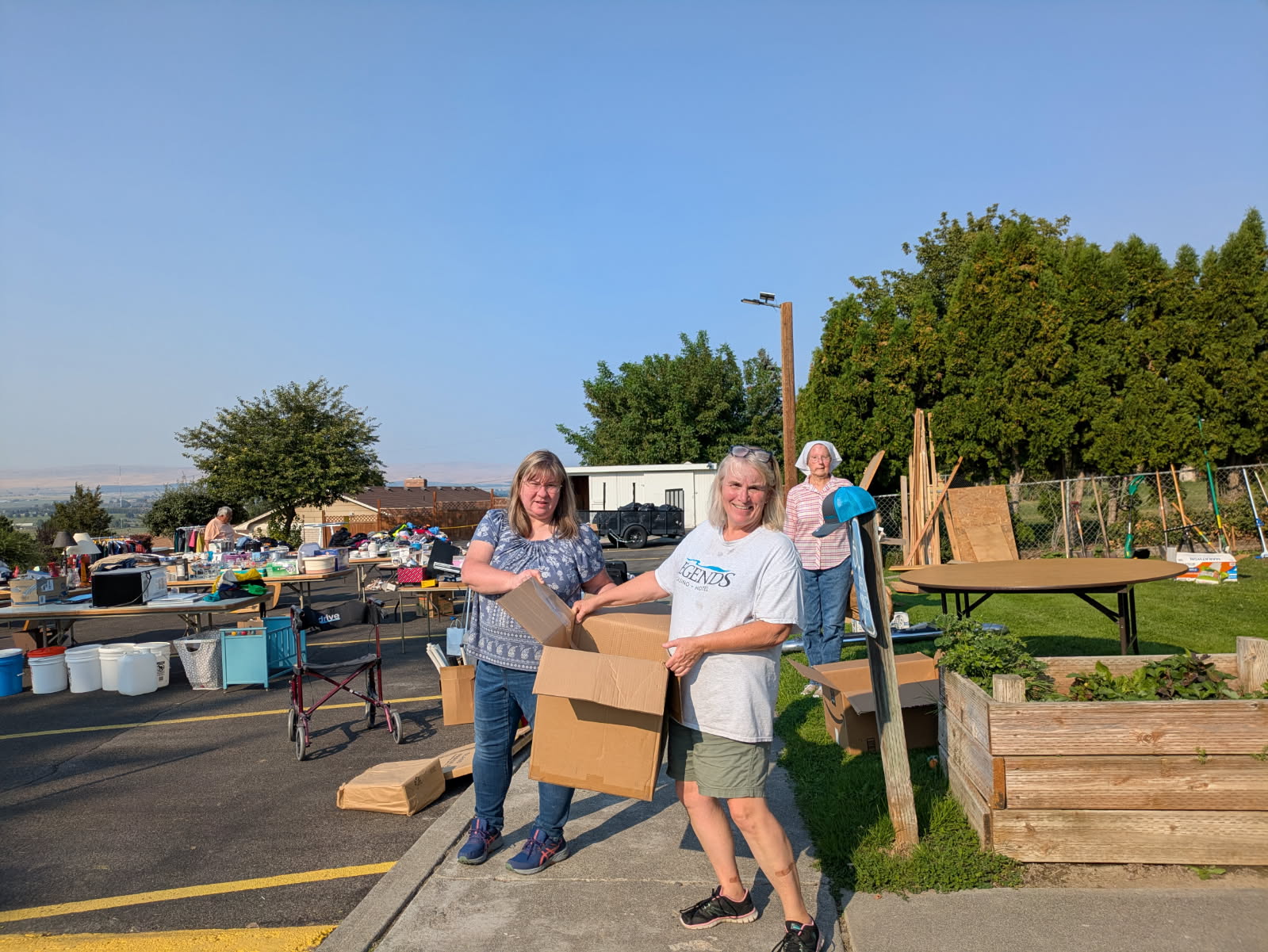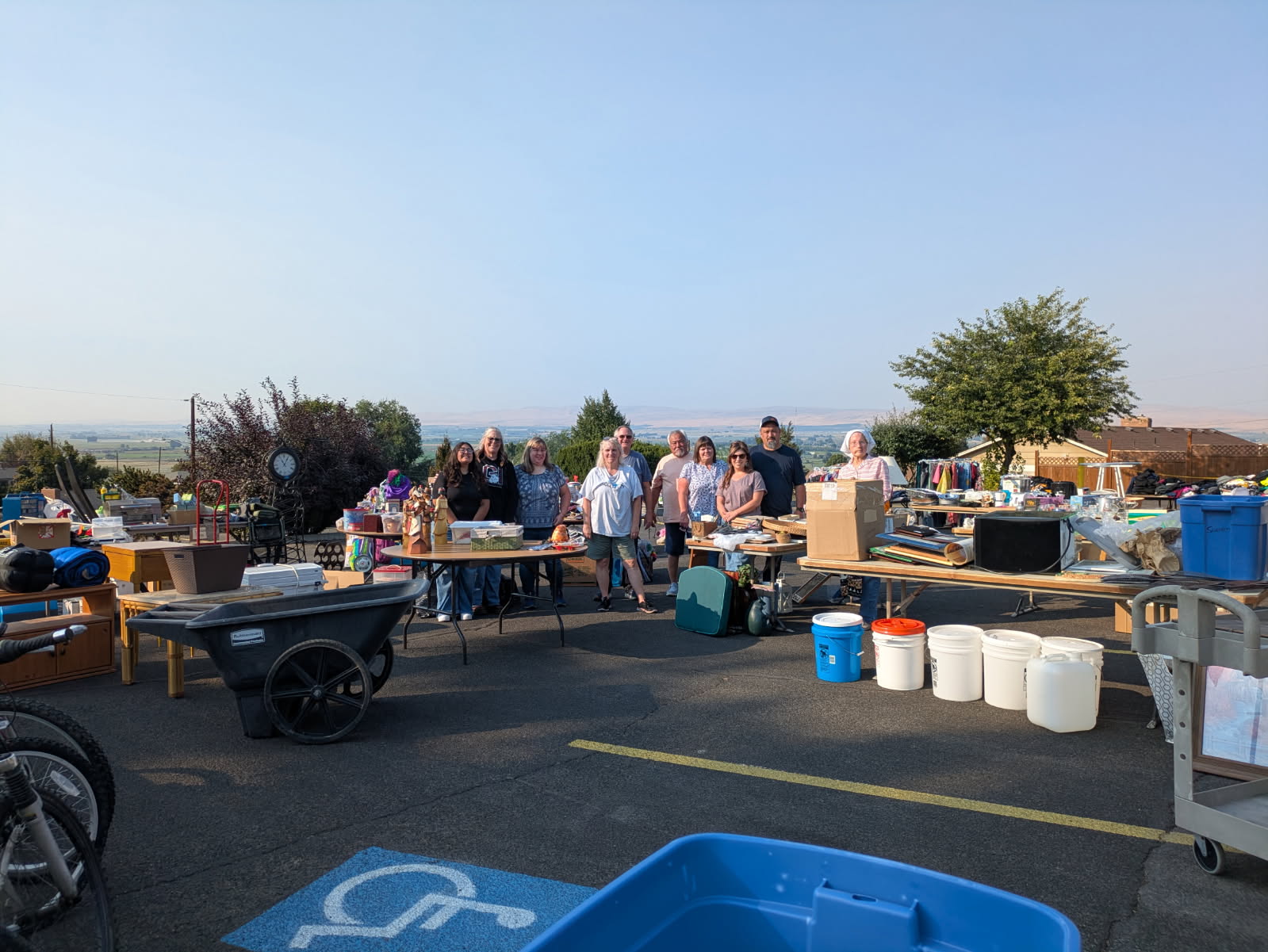 . . . we gathered out in the parking lot for our annual exercise in cleaning out other people’s garages!