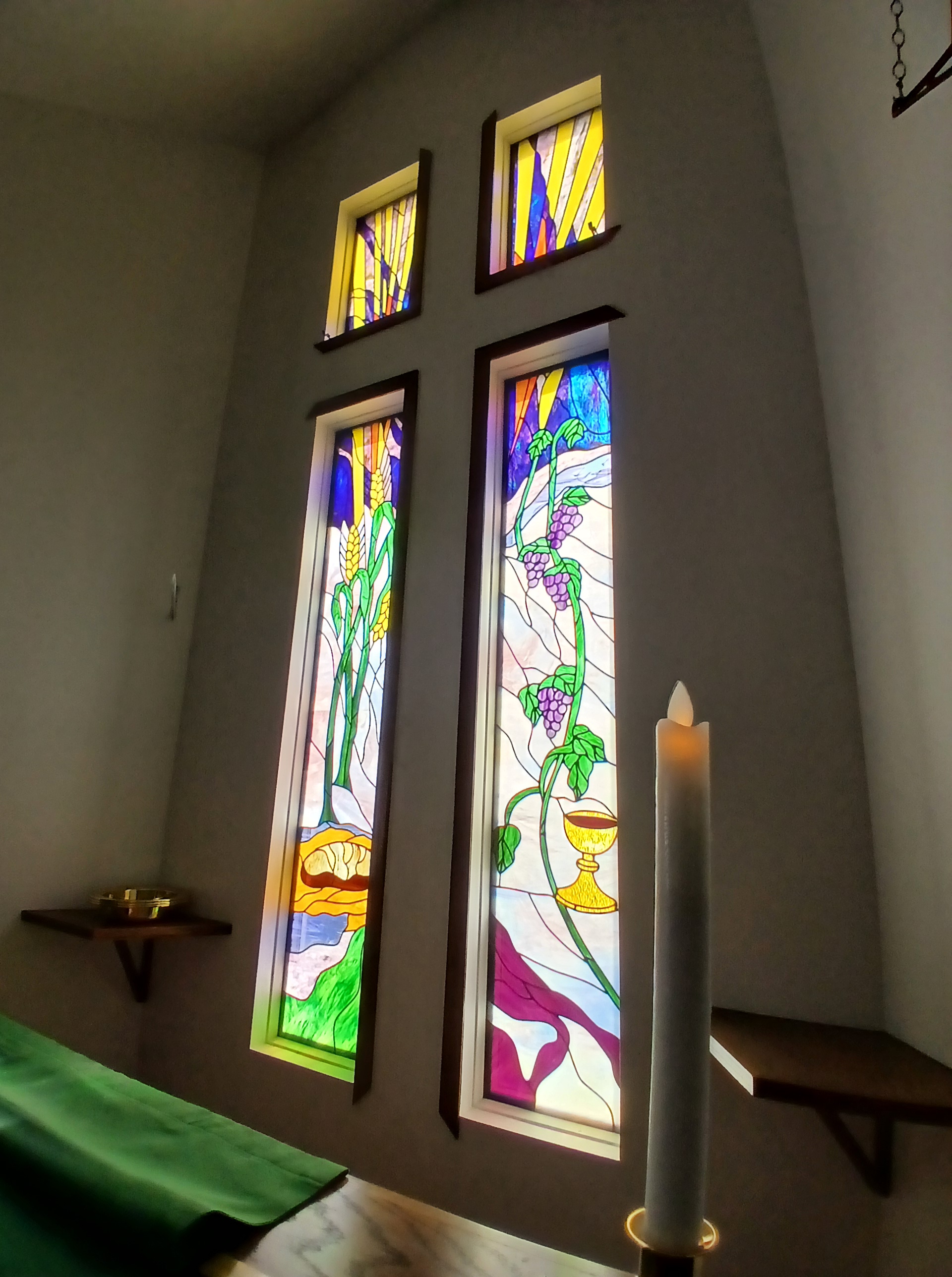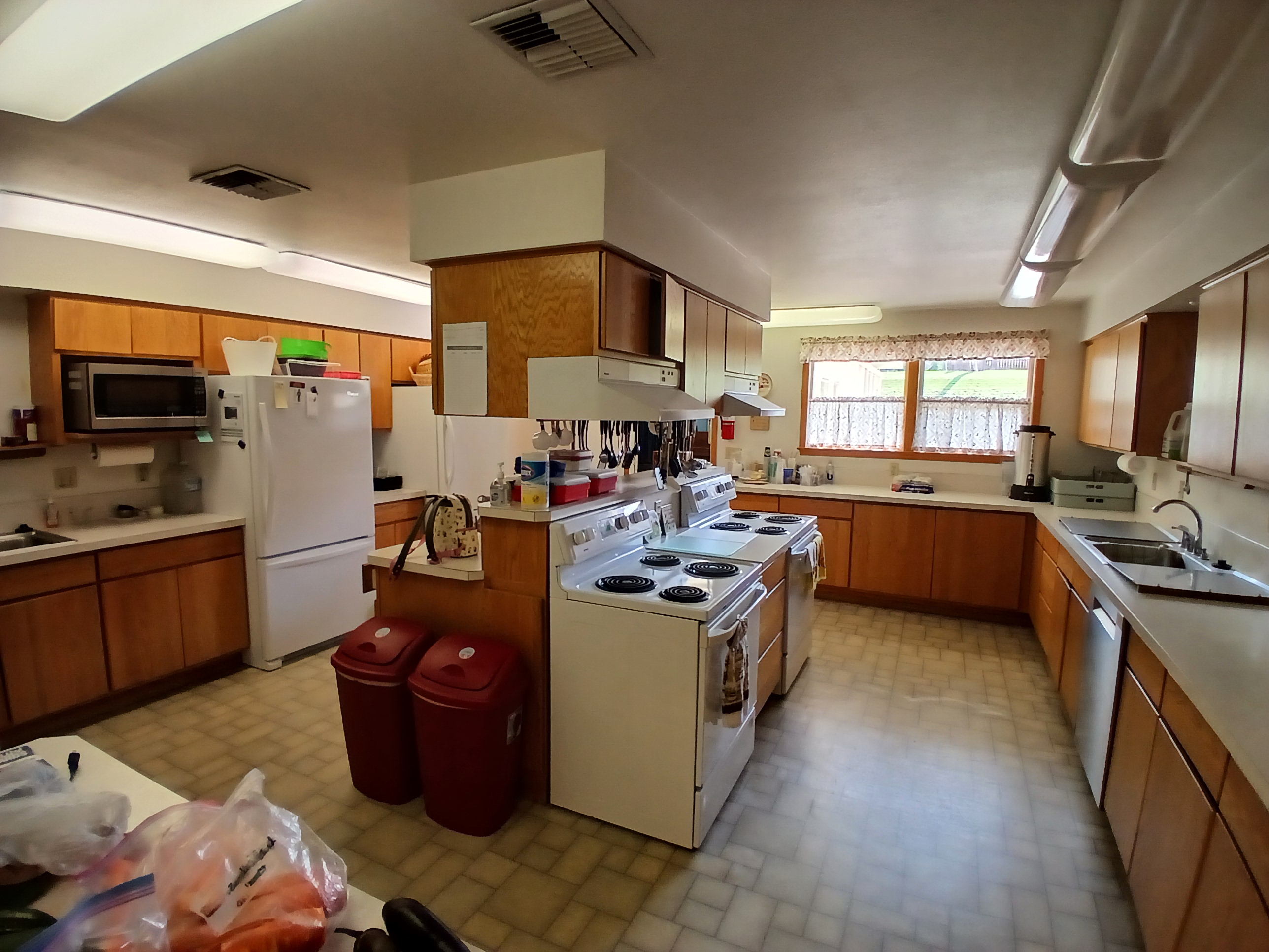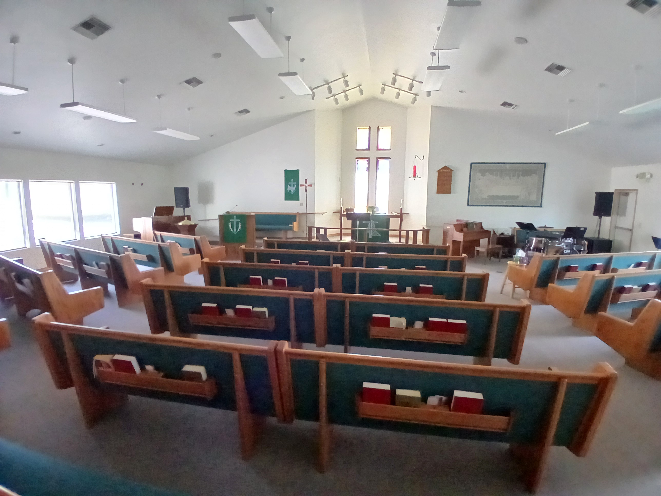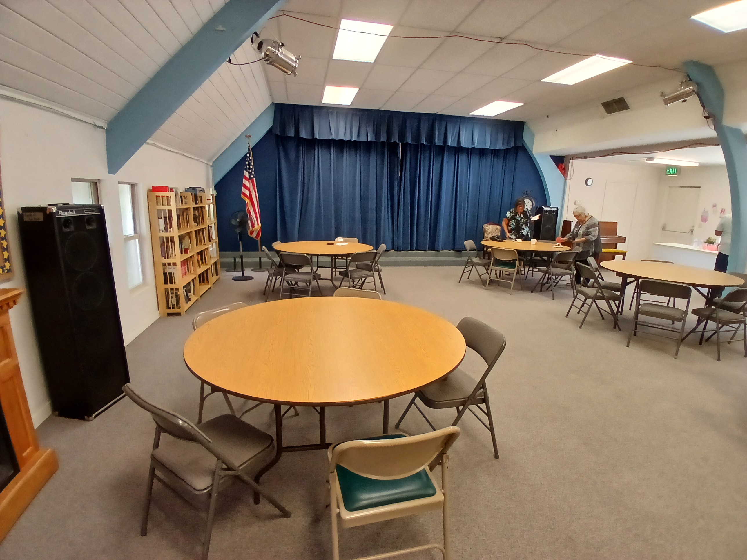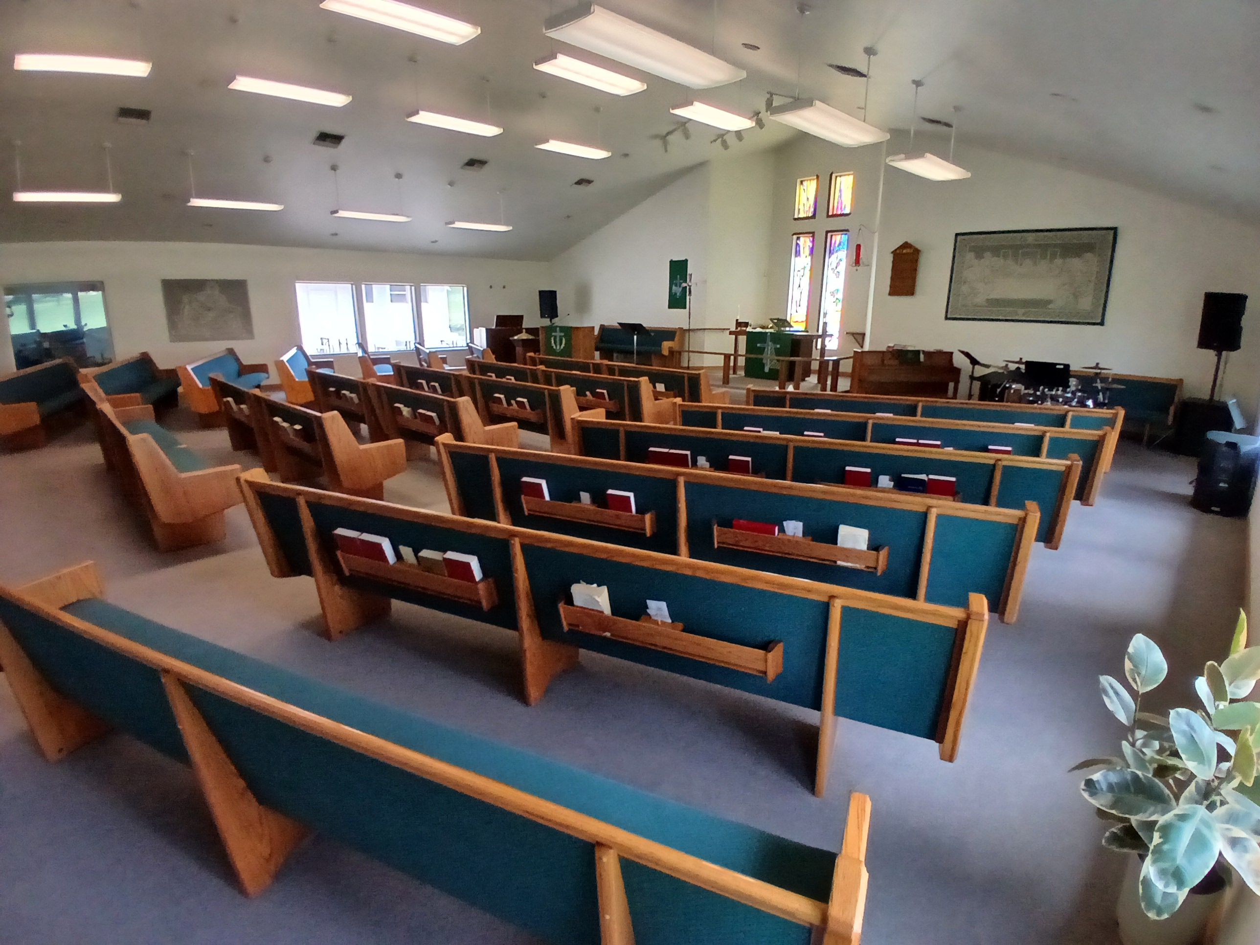 Our quiet, hilltop church has a bright, airy sanctuary seating 180, a 2 stove kitchen with loads of counter space, an outdoor patio connected to the 80 seat social hall, lovely grounds and lots of parking.